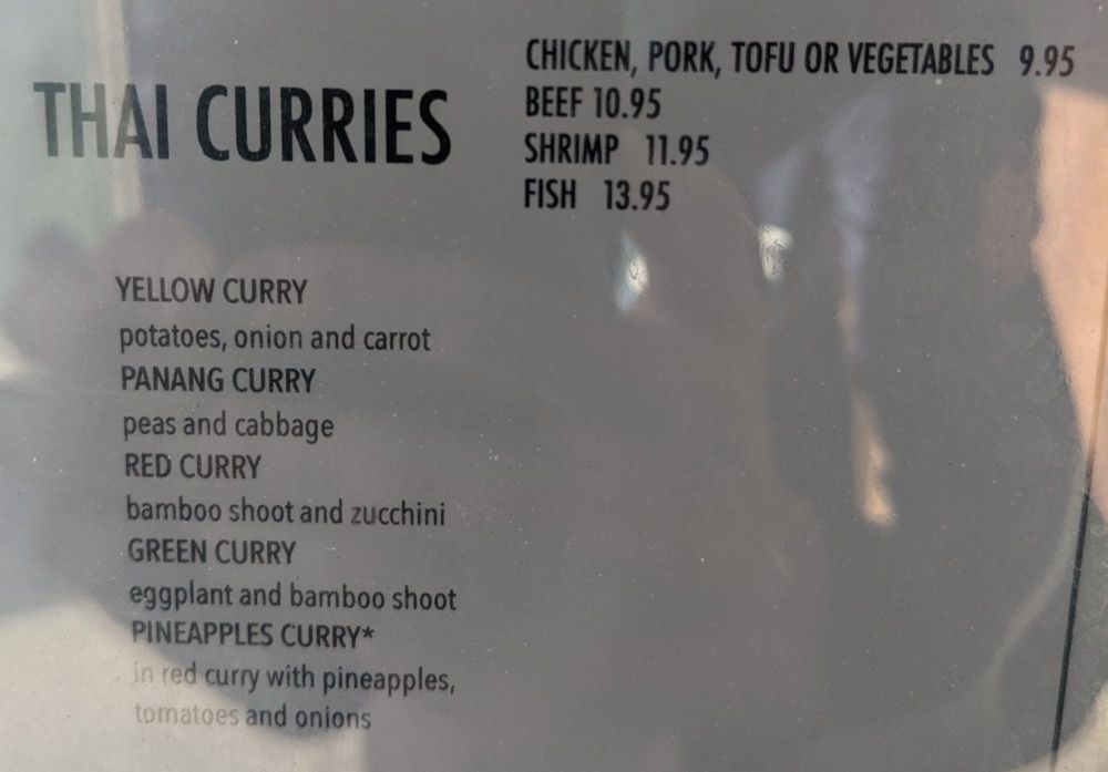 The rice plates are equally compelling, featuring dishes like the aromatic Thai Fried Rice and the flavorful Basil and Chili Fried Rice, all reasonably priced from $12 to $16. For noodle enthusiasts, the Noodles Soups are a must-try, with options like Tom Yum and Curry Noodles, ensuring a satisfying warm and comforting meal.